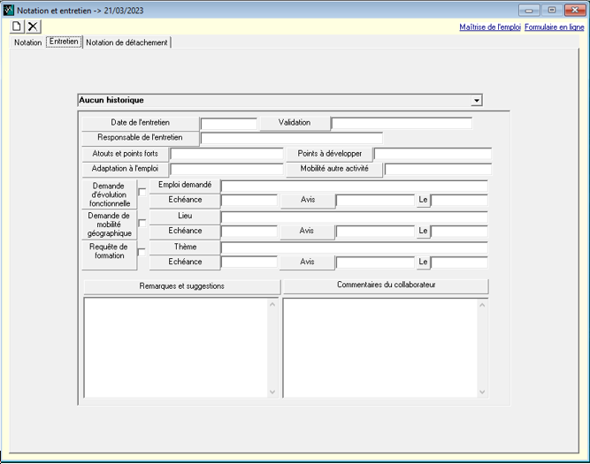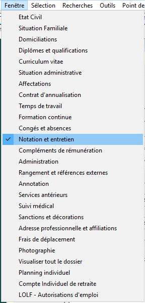 Un résumé des informations sur l’entretien de l’agent est disponible dans fenêtre > notation et entretiens.