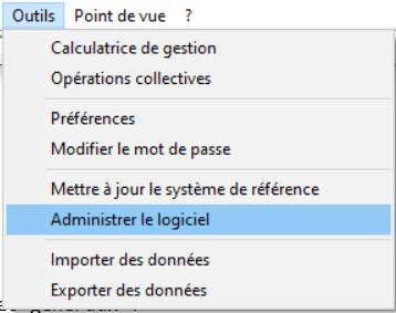 - L’accès à l’option « Administrer le logiciel » du menu « Outils » ;