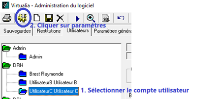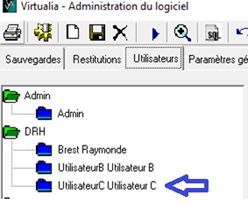 Pour dupliquer le compte de UtilisateurB Utilisateur B, allez dans Outils > Administrer le logiciel > Utilisateurs
