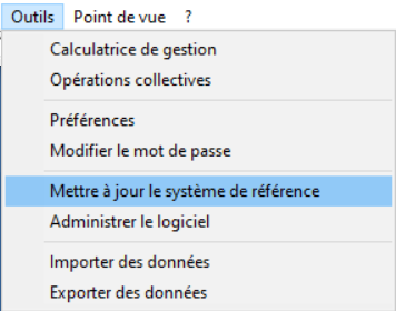 Pour créer le squelette du plan de formation, il faut se rendre dans outils > mettre à jour le système de référence