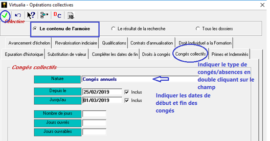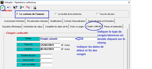 - Sélectionnez l’onglet Congés collectifs