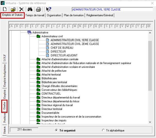 Statut en gestion permet de réaliser le premier filtre de l’arborescence : grades en gestion, anciens grades, autres grades. Si cette case n’est pas remplie, Virtualia créé automatiquement un statut “statuts en gestion”. Il reste cependant différent de “grades en gestion”, nous vous recommandons de vérifier les autres grades en gestion et de les paramétrer de la même manière.