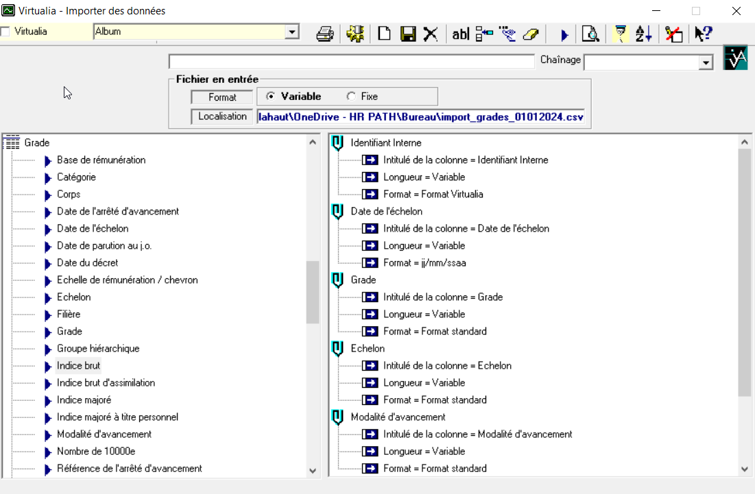 Notre conseil est d’abord d’exporter toutes les fiches grade des agents, pour les réimporter ensuite avec les modifications.