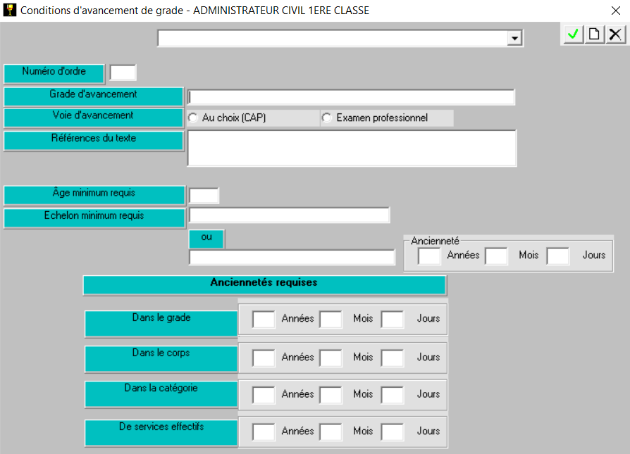 permet de paramétrer les conditions d’avancement de grade.
