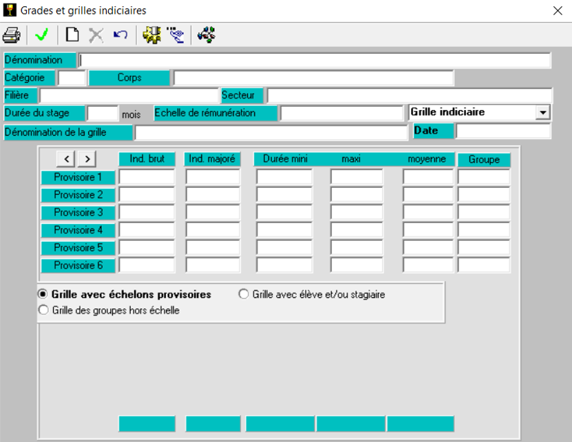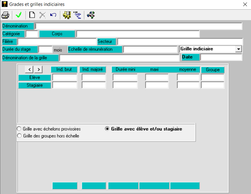 Pour créer un nouveau grade, cliquez sur la page blanche 📄 et remplissez les informations correspondantes.