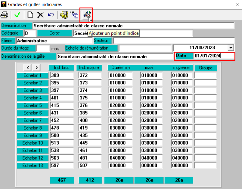 Vous devrez modifier l’intitulé du grade et les numéros des échelons pour afficher les manquants. Par contre vous devrez conserver le même code grade NNE pour que les données soient correctes en paie.