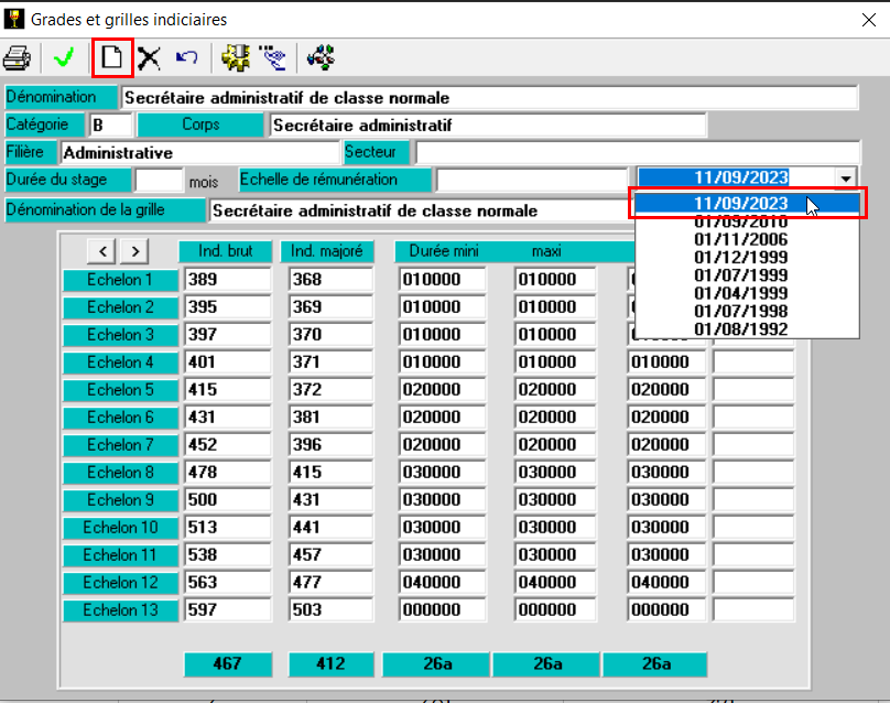 L’échelle de rémunération permet de réaliser une mise à jour collective de grille. En mettant à jour une grille reliée à une échelle de rémunération, toutes les autres grilles liées à cette échelle se mettront automatiquement à jour.