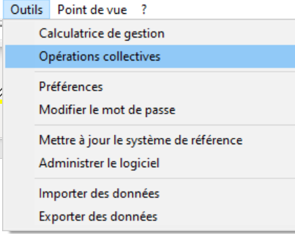 Pour lancer l’opération collective sur la population sélectionnée, aller dans outils > opérations collectives.