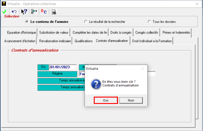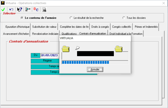 Majoritairement, un seul contrat d’annualisation existe par établissement, cas ce cas il faut sélectionner tous les dossiers.