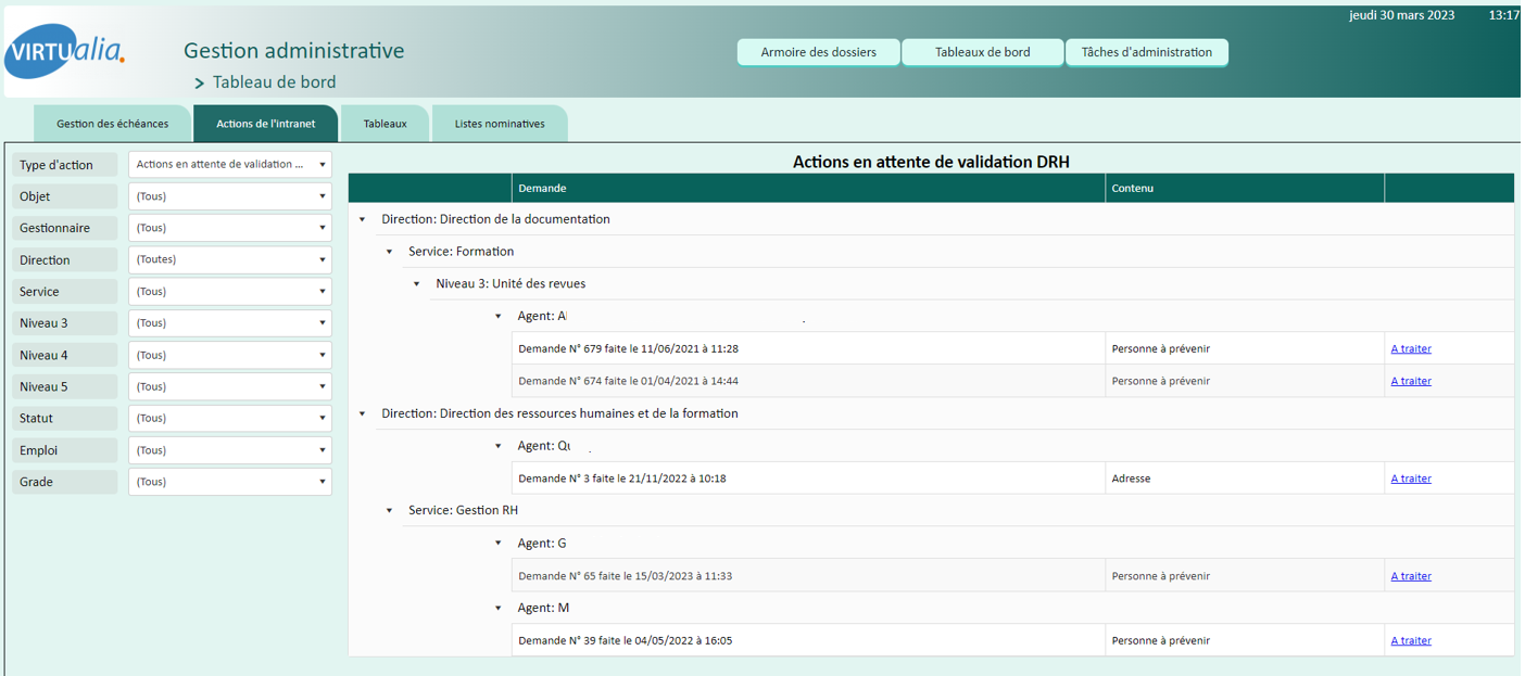 Cet onglet vous permet de valider ou refuser les demandes réalisée sur l’intranet. Ces demandes peuvent être :