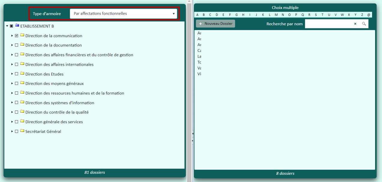La valeur en bas de l’armoire correspond au nombre de dossiers au sein de l’armoire, en prenant en compte le filtre appliqué.