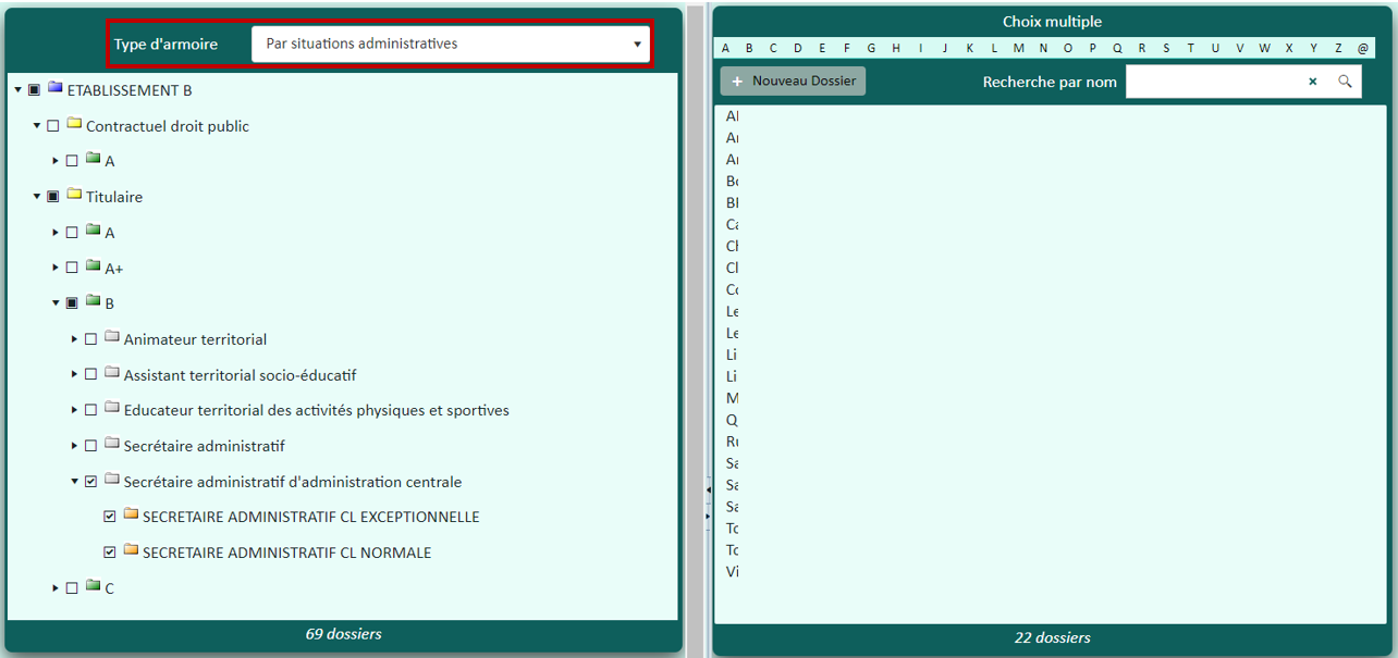 - la liste par situation administrative - vos situations apparaîtront et vous pourrez sélectionner une ou plusieurs données